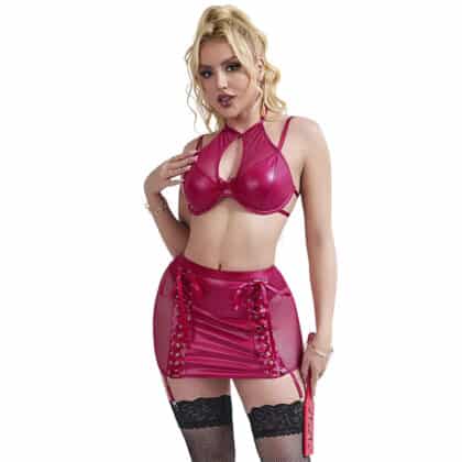 Subblime – 957605 Conjunto De Sutiã E Saia De Couro Vermelho S/M
