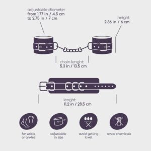 Garanta que o seu sub não escapa a cada toque com estas belas algemas. Características principais:· Algemas de imitação de couro· Ajustáveis· Para pulsos ou tornozelos· Correia de abertura rápida removível· Unisexo· Algemas com 3 anéis em D de metal· Material: Metal, Faux leather