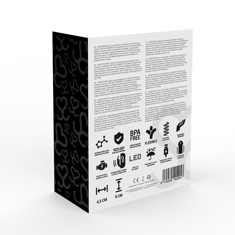 - Diâmetro do anel: 3cm, flexível, adaptável a todos os tamanhos de pênis