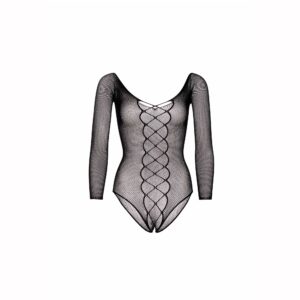 Body muito sensual com abertura na virilha e padrão de rede que deixará muito pouco à imaginação. A imitação de cordas dá um lado atrevido a este maravilhoso body que irá ajustar-se perfeitamente ao seu corpo graças à sua elasticidade.Produto de alta qualidade embalado em luxuosa caixa de lingerie de cartão.Material: 94% Nylon, 6% Spandex.