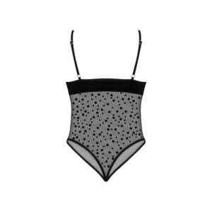 O Amalia Teddy é um body sedutor que combina delicadeza e sensualidade. Feito de malha transparente adornada com pontos divertidos, realça na perfeição as curvas femininas. O modelo apresenta recortes sensuais à volta do busto, acrescentando-lhe tempero e carácter único.Caraterísticas do produto:Malha transparente adornada com pintas.Recortes sensuais à volta do busto.Alças ajustáveis para um ajuste perfeito.Laços delicados que acrescentam charme.Embalado numa caixa elegante com uma fotografia do produto.Tamanhos: S/M e L/XL Tamanho S/M: (Peitos: 81-91 cm, B-C, Cintura: 56-71 cm, Anca: 85-97 cm) Tamanho L/XL: (Peitos: 91-107 cm, C-D, Cintura: 71-91 cm, Anca: 97-112 cm)Material: 88% poliéster, 12% elastano