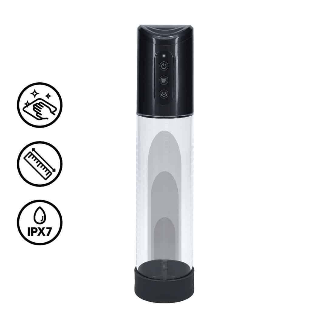 A HyperPump oferece-lhe amplas possibilidades de aumento do pénis. A manga de inserção é em silicone suave, garantindo uma experiência confortável. Com um simples toque, a bomba extremamente potente cria um vácuo muito forte, proporcionando ereções rápidas e poderosas.
