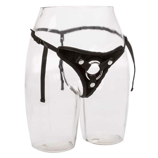 Arnês tanga com design luxuoso, confeccionado em tecido de veludo. É universal, atende tamanhos grandes e pequenos.