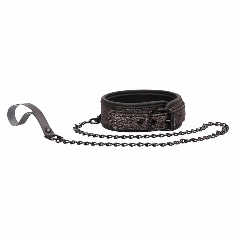 MATERIAL:Pele, Neopreno, Metal.DESCRIÇÃO:Deseja passar as brincadeiras para um patamar muito mais elevado sem perder o requinte? Então esta coleira é perfeita para isso. As suas tiras e a sua costura, possuem uma magnífica elegância e qualidade. Faça com que o seu amante obedeça às suas ordens e vontades com ELEGANT…