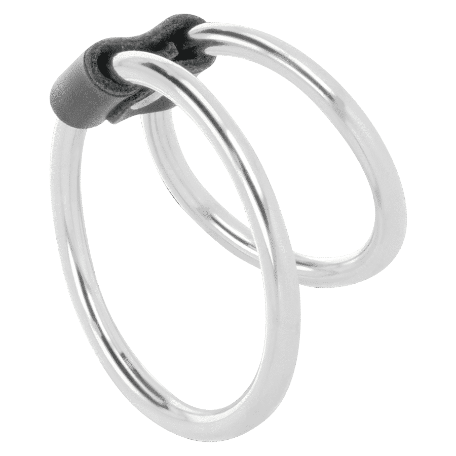 Anel duplo para pênis feito de metal sem níquel de alta qualidade, que permite retardar a ejaculação, manter o pênis ereto por muito mais tempo e prolongar o tempo das relações sexuais.