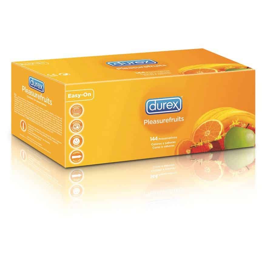 Os preservativos Durex Pleasure Fruits são lubrificados com aromas e sabores de frutas: morango, banana, laranja e maçã. Eles também têm cores diferentes. Eles estão tão seguros com os naturais. Perfeito para tornar cada experiência sexual original e diferente. Muito divertido, você vai adorar.