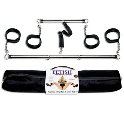 Dê as boas-vindas ao seu amante de braços e pernas abertos com este incrível conjunto Spread 'Em Bar & Cuff!
