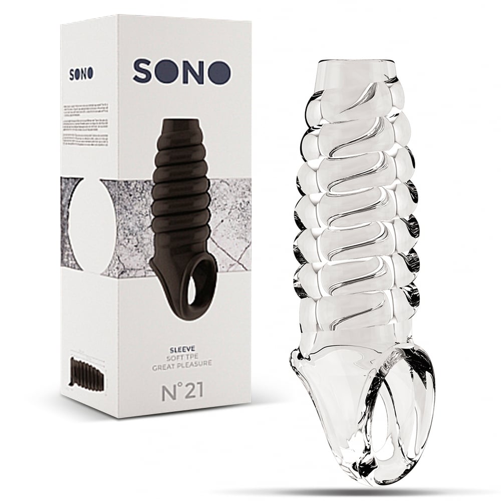 mais quentes. Criada a partir do melhor e mais suave TPE. Livre de ftalatos e à prova de água. USO RECOMENDADO:Recomenda-se o uso de lubrificante.DIMENSÕES:- Comprimento total: 205 mm.- Comprimento da manga: 139 mm.- Circunferência da manga: 60 mm.- Circunferência da alça para os testículos: 50 mm.COR:Transparente.