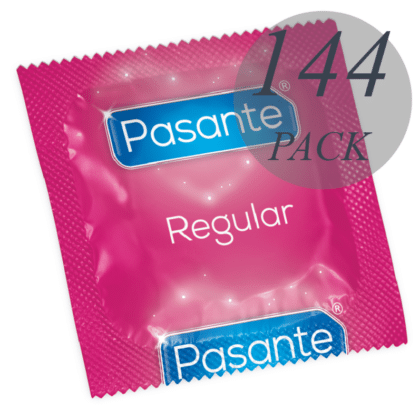 Os preservativos Pasante Regular têm um formato ligeiramente cônico para uma sensação natural. Macio, de cor natural e com ponta em tetina.