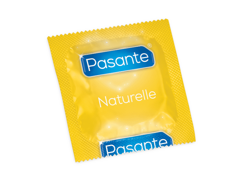 Os preservativos Pasante Naturelle têm um formato ligeiramente cônico para uma sensação natural. Macio, de cor natural e com ponta em tetina.