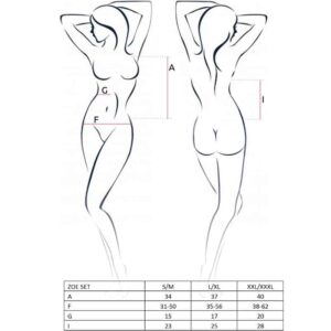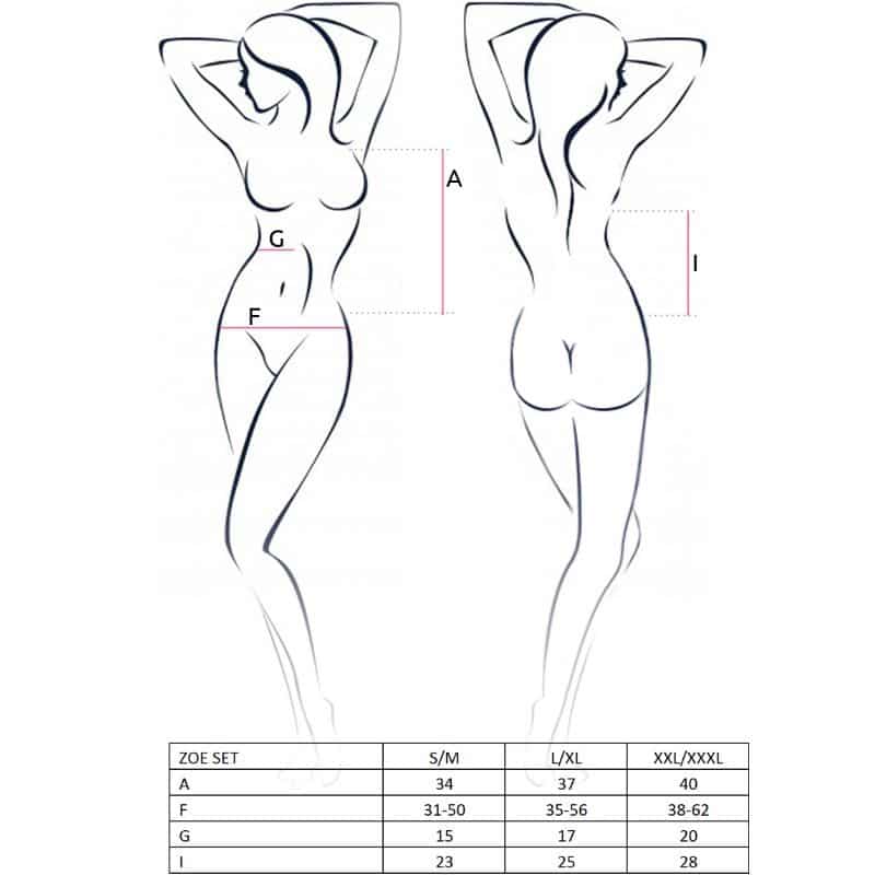 O conjunto da coleção Zoe é um fabuloso conjunto de lingerie com um design espectacularmente sexy com o qual você se tornará uma bomba de sedução, fabricado pela prestigiada marca de lingerie Passion