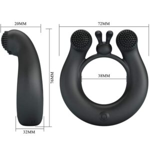 O anel de silicone se encaixa perfeitamente ao redor do eixo para reter o fluxo sanguíneo e manter o usuário duro por mais tempo, ao mesmo tempo em que atrasa e intensifica seu clímax para resultar em um final explosivo! Dentro de cada lado do anel peniano, motores duplos alimentam o anel com 12 modos de vibração tentadores, que fazem as pontas do teaser piscarem e vibrarem contra os pontos mais sensíveis do parceiro receptor!