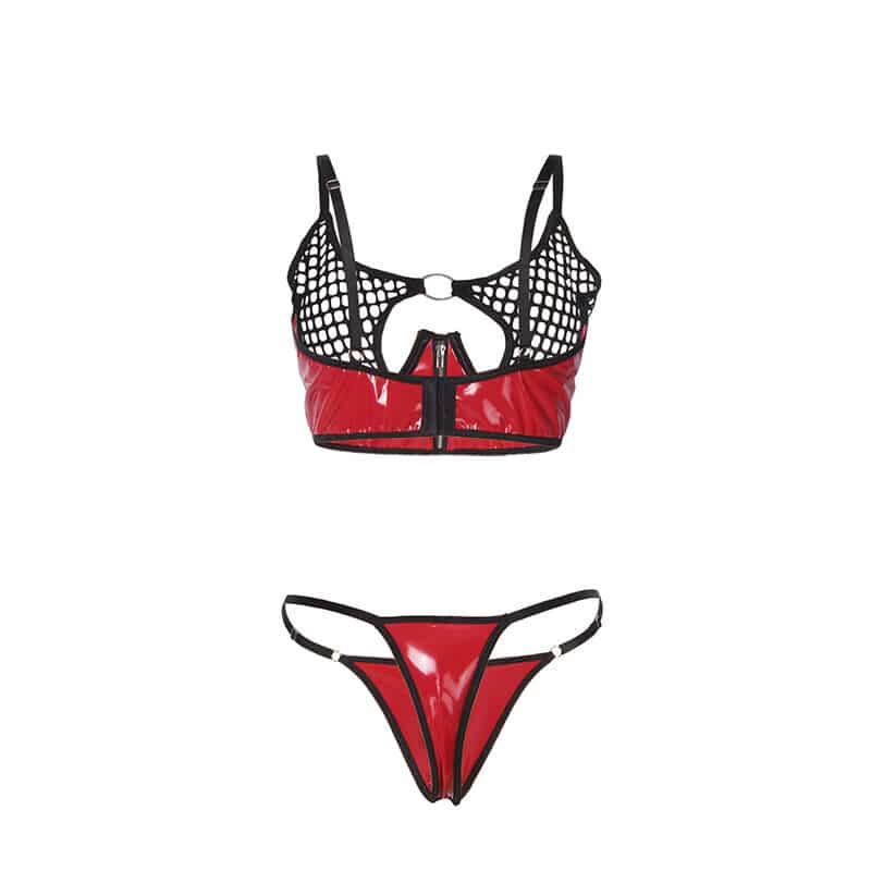 O Conjunto de Lingerie Vermelha Brilhante de Couro Sintético, Malha e Zíper da SUBBLIME combina sensualidade, confiança e estilo de uma forma única. Sinta-se poderosa, confiante e deslumbrante com esta peça que não passará despercebida.