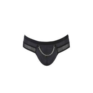 A tanga Tom 030 preta é feita de couro ecológico combinado com uma malha intrigante e uma corrente metálica. O conjunto é complementado pelo corte jockstraps, que realça as nádegas.O modelo Tom é uma excelente escolha para os homens que apreciam o conforto, mas que, ao mesmo tempo, querem estar atraentes e na moda.Graças ao facto de serem feitos de material elástico, ajustam-se perfeitamente ao corpo e proporcionam o máximo conforto durante a sua utilização.