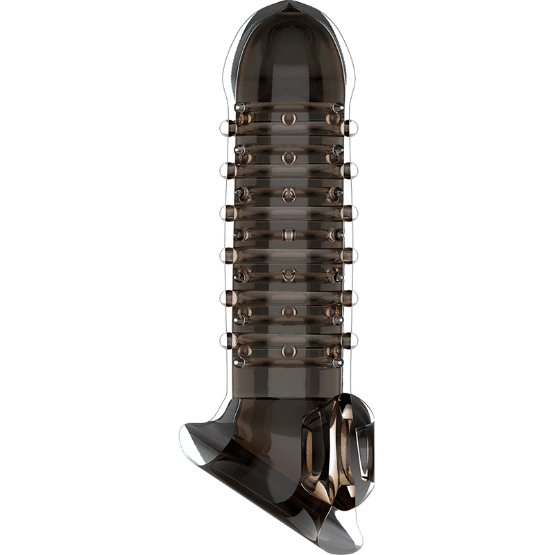 Realize fantasias emocionantes ao deslizar seu pênis na bainha e seu escroto na alça. Depois que esta manga de extensão estiver fixada, você terá mais comprimento e circunferência para brincar com suporte total.