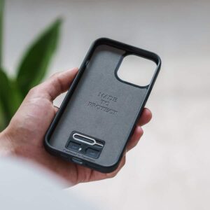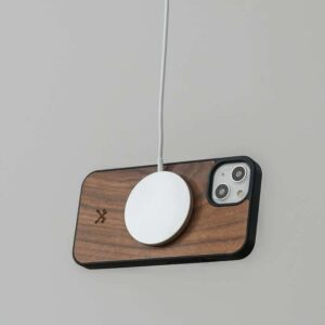 Capa com revestimento em madeira, bordo de silicone, interior revestido a felpo com ranhuras para clip e cart?es SIM, e magnets MagSafe incorporados. Tem protec??o anti-queda at? 1.8m, bordos salientes para evitar riscos no ecr? se o telem?vel estiver pousado, e apenas 1.5mm espessura. ? compat?vel com qualquer acess?rio MagSafe. Por cada capa vendida, a Woodcessories planta 1 ?rvore.